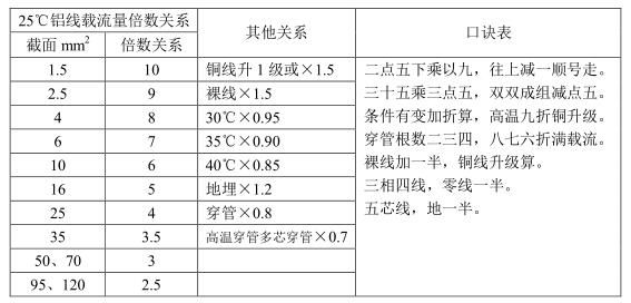 注解:10㎜2以下的鋁導線載流量按5A/㎜2計算;