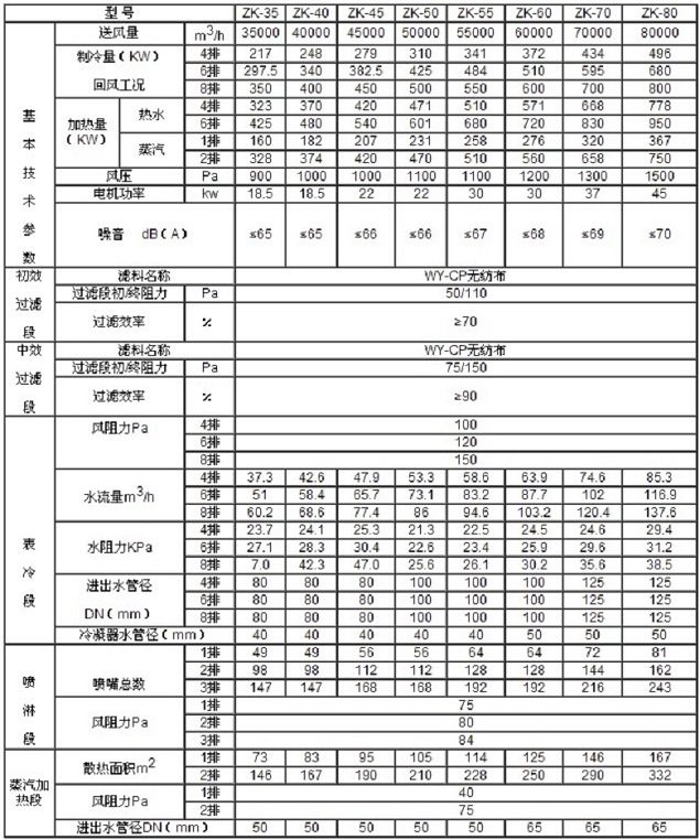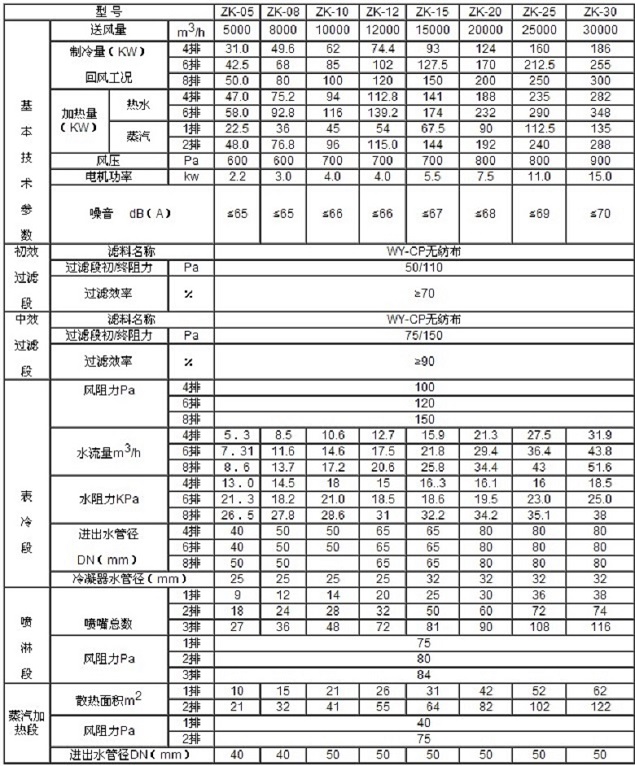 zhngyou/眾有組合式空調(diào)主機(jī)技術(shù)規(guī)格: