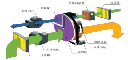 轉(zhuǎn)輪除濕機組工作原理: